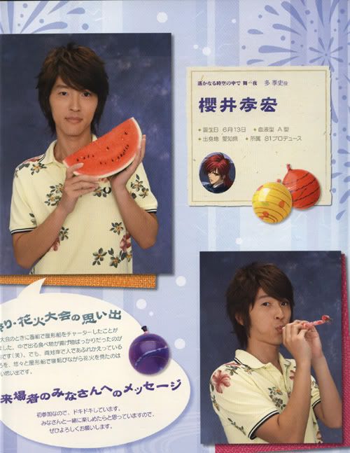06的遥祭已经结束了~等着11月的DVD发售~7160日圆~败OR不败...It is a question................ 很羡慕能够去国立HALL看遥祭的亲,某穷猫会努力学习考进大学然后去07或者08再或者09的遥祭!!国立HALL!我一定会.来的! 彰彰!等我~~~~~~~~~~~~~~~~~~~~~~~ 就算我现在去,也不能把他们的对话全部听懂..ORZ...要更加努力的学日文! 今天的遥祭已经过去了~去不了现场,偶们先看看场刊也高兴的~ 图片为sakura33亲自扫
